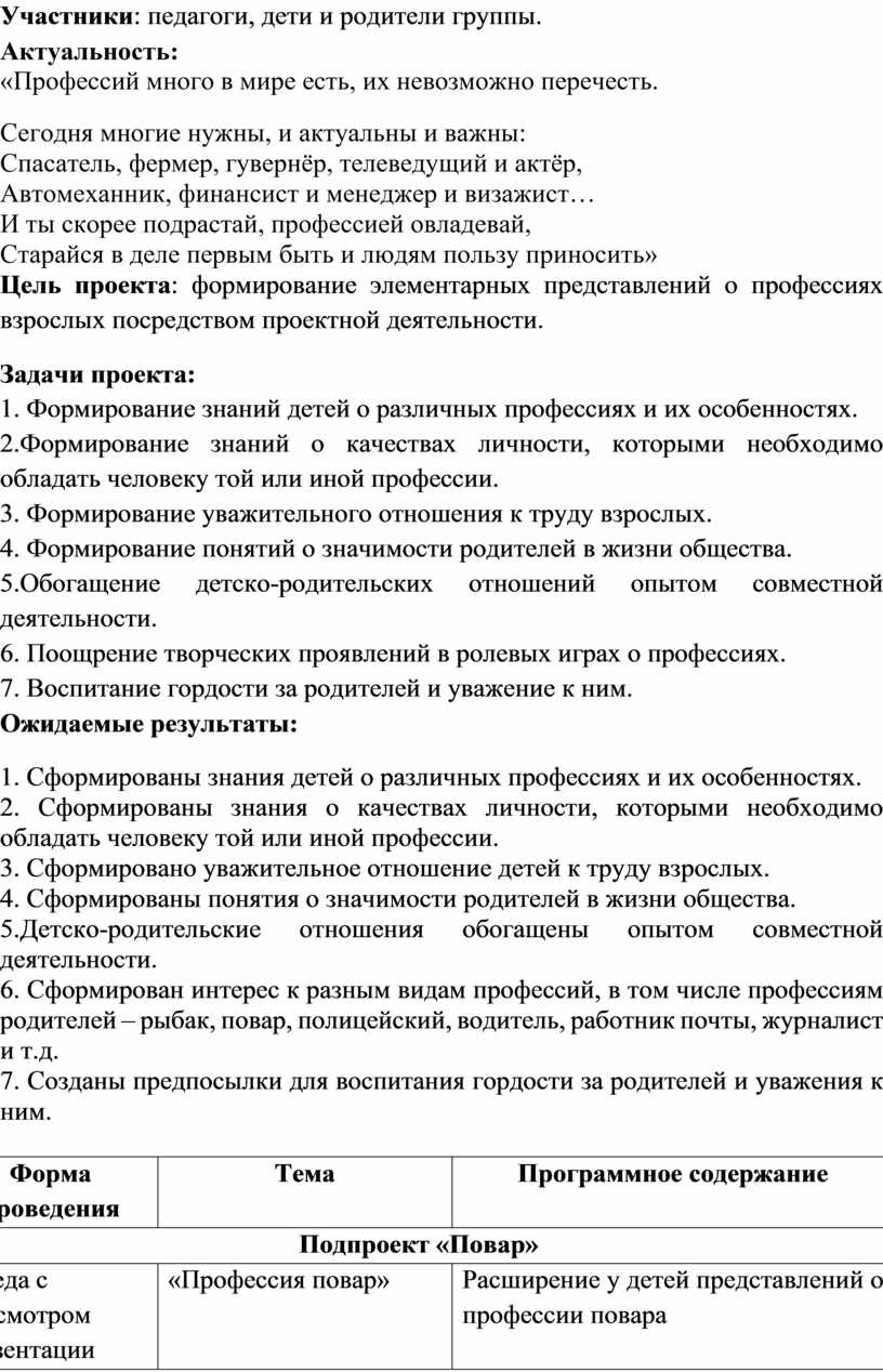 В-третьих, проектная деятельность является уникальным средством обеспечения сотрудничества между детьми и взрослыми. В работе над проектом происходит взаимодействие всех участников образовательного процесса: специалистов, детей, родителей.