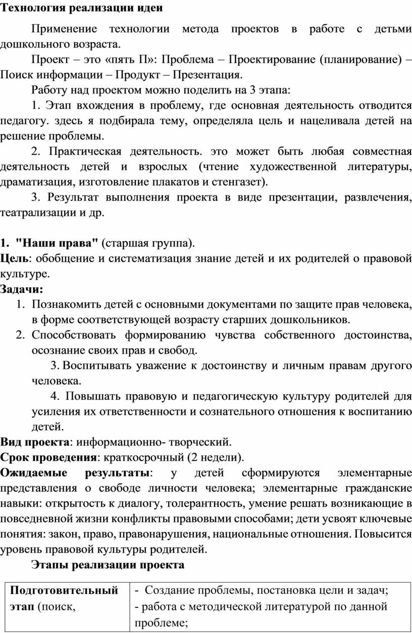 Применение технологии метода проектов в работе с детьми дошкольного возраста.