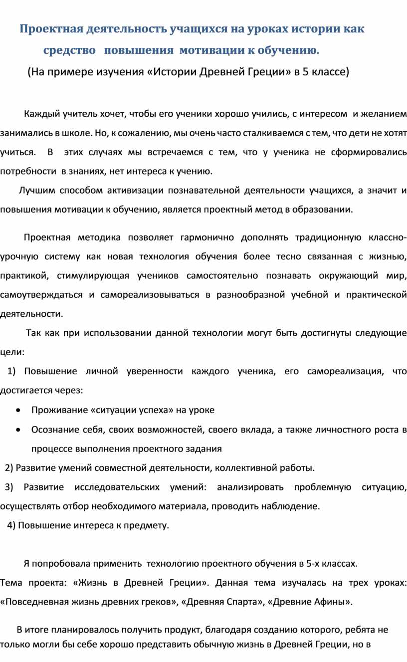 Лучшим способом активизации познавательной деятельности учащихся, а значит и повышения мотивации к обучению, является проектный метод в образовании.
