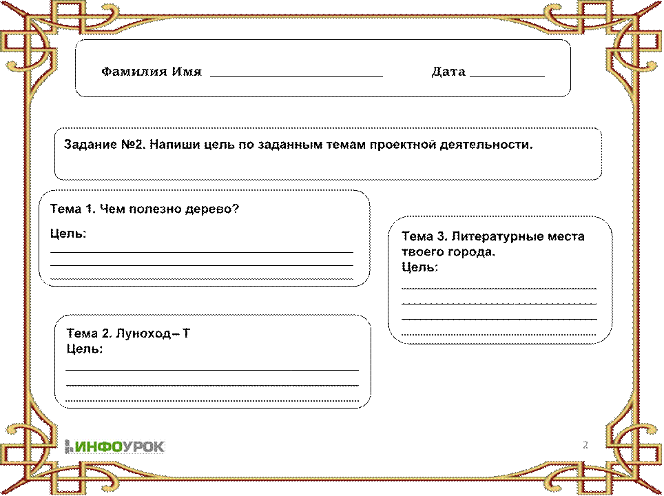 1. Примерный ответ. Цель проекта — это конечный результат, к которому вы хотите прийти в ходе выполнения работы.