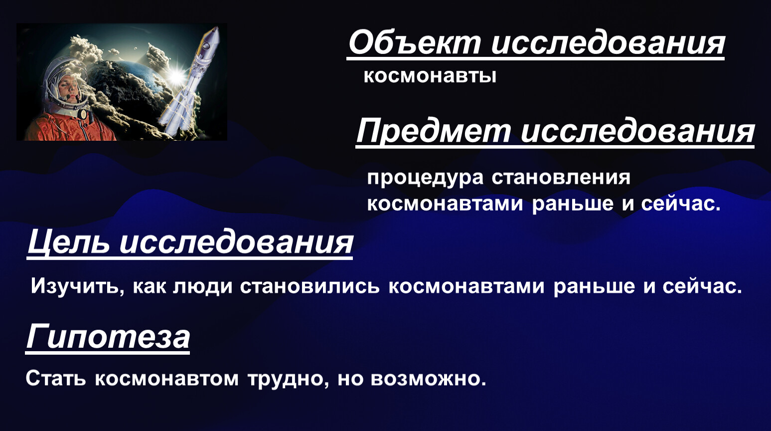 Мне стало интересно, а как же появились первые космонавты, ведь раньше такой профессии совсем не было. И как становятся космонавтами сейчас.