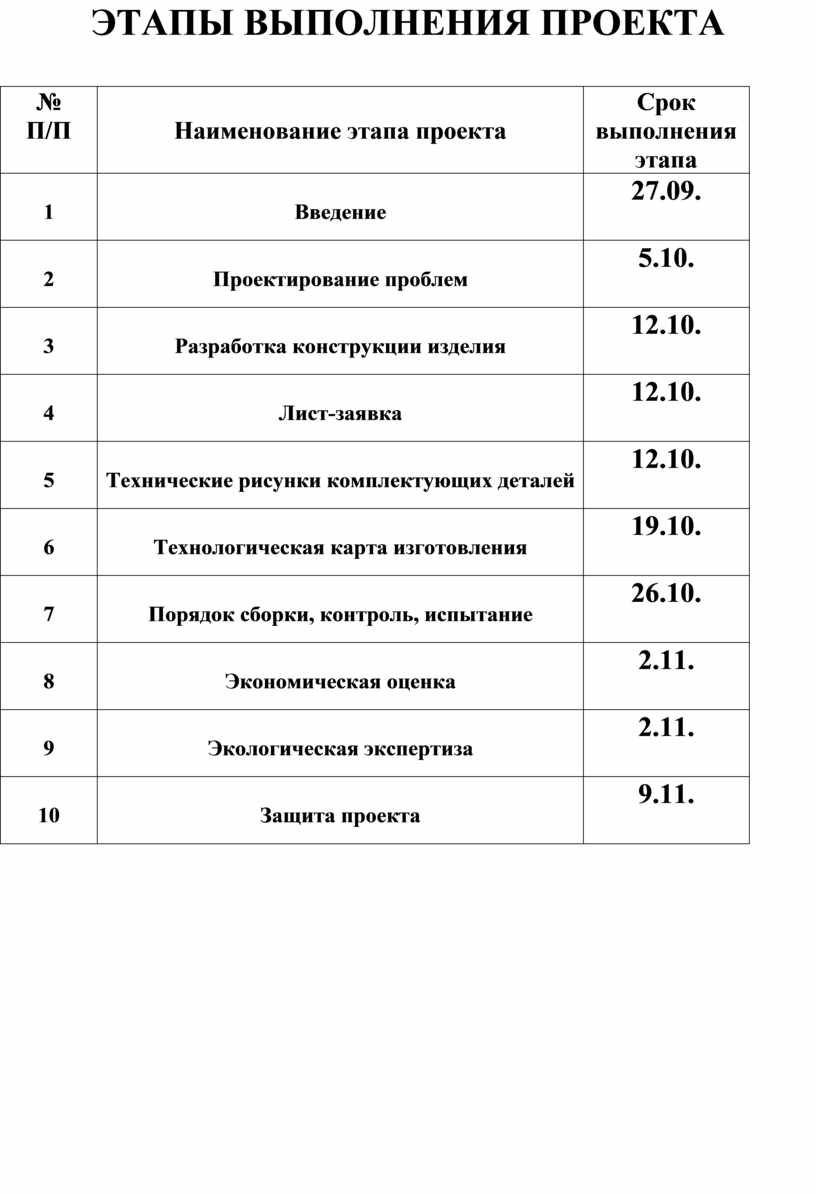 ЭТАПЫ ВЫПОЛНЕНИЯ ПРОЕКТА