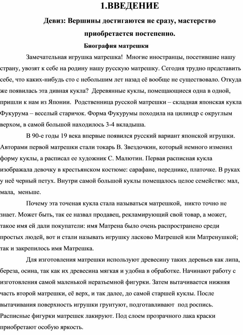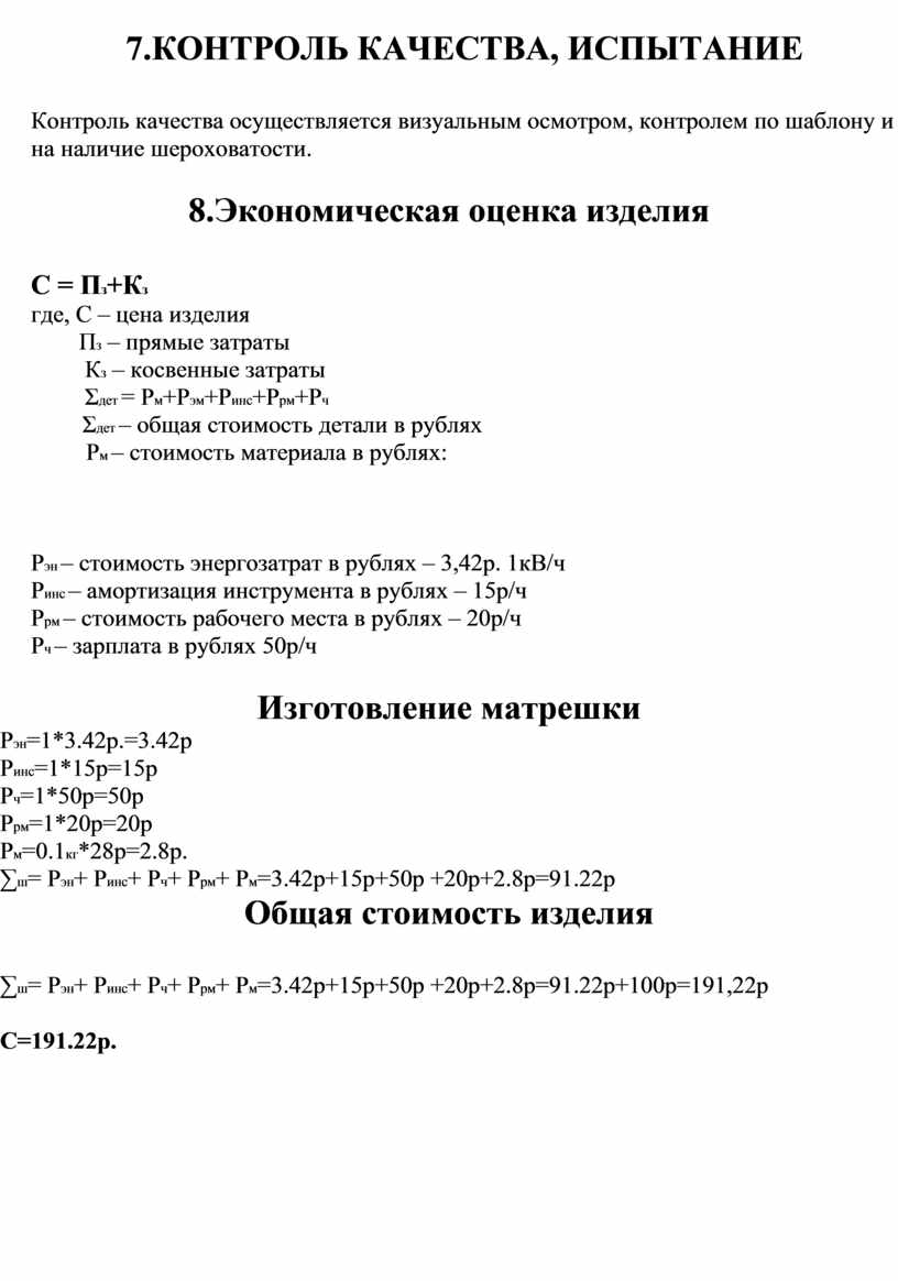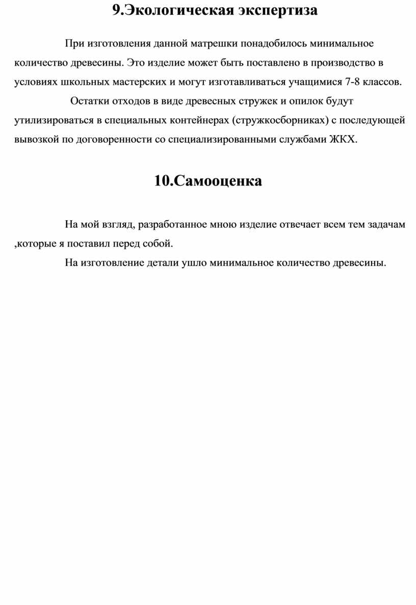 При изготовления данной матрешки понадобилось минимальное количество древесины. Это изделие может быть поставлено в производство в условиях школьных мастерских и могут изготавливаться учащимися 7-8 классов.