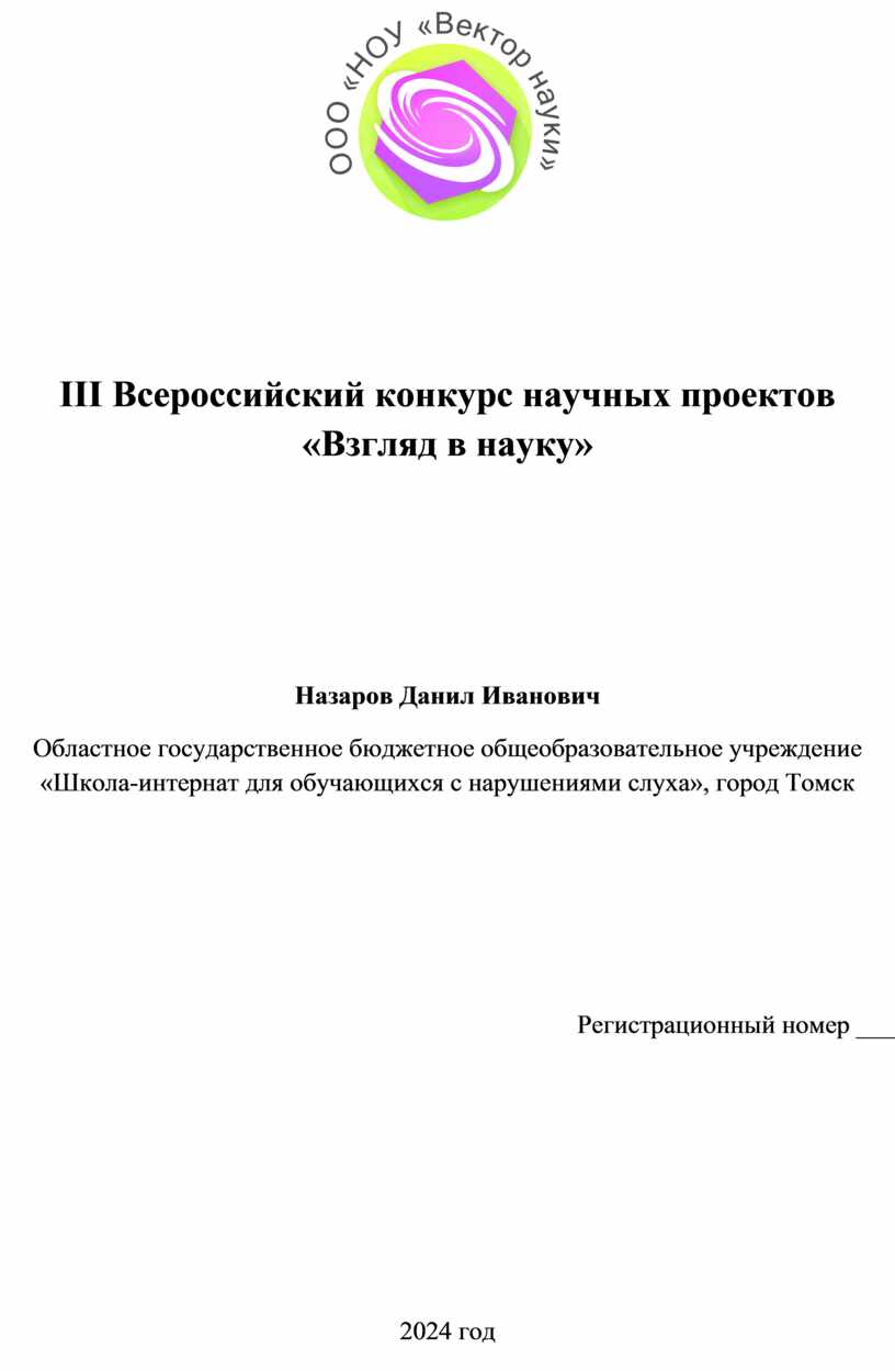 Прошу принять мои материалы для участия в III Всероссийском конкурсе научных проектов «Взгляд в науку»