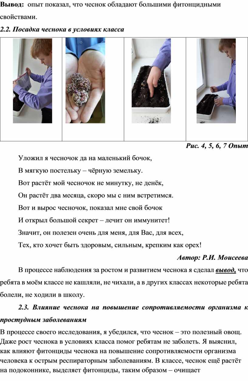 В процессе наблюдения за ростом и развитием чеснока я сделал вывод, что ребята в моём классе не кашляли, не чихали, а в других классах некоторые ребята болели, не ходили в школу.