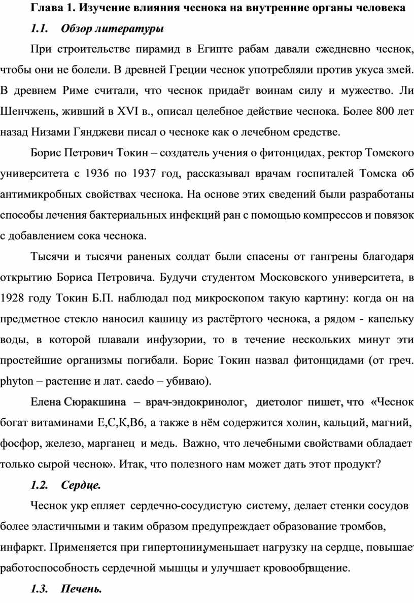 Глава 1. Изучение влияния чеснока на внутренние органы человека