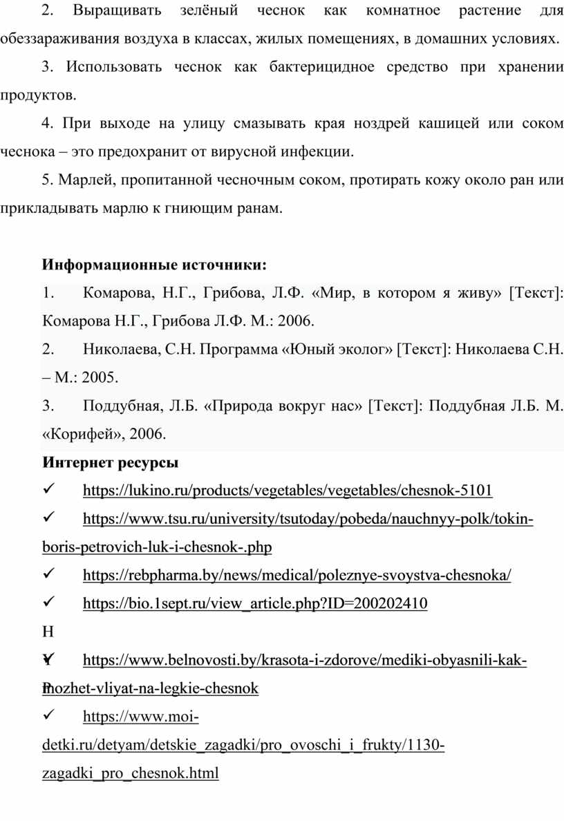 2. Изучить литературу и ресурсы сети Интернет о чесноке.