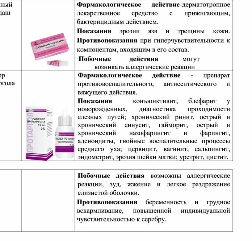 Фармакологическое действие-дерматотропное лекарственное средство с прижигающим, бактерицидным действием. Показания эрозии язв и трещины кожи. Противопоказания при гиперчувствительности к компонентам, входящим в его состав. Побочные действия могут возникать аллергические реакции |