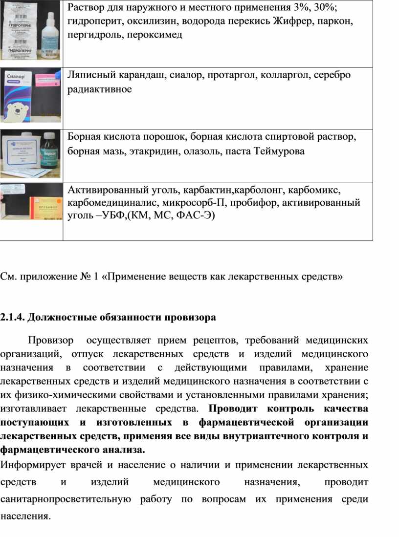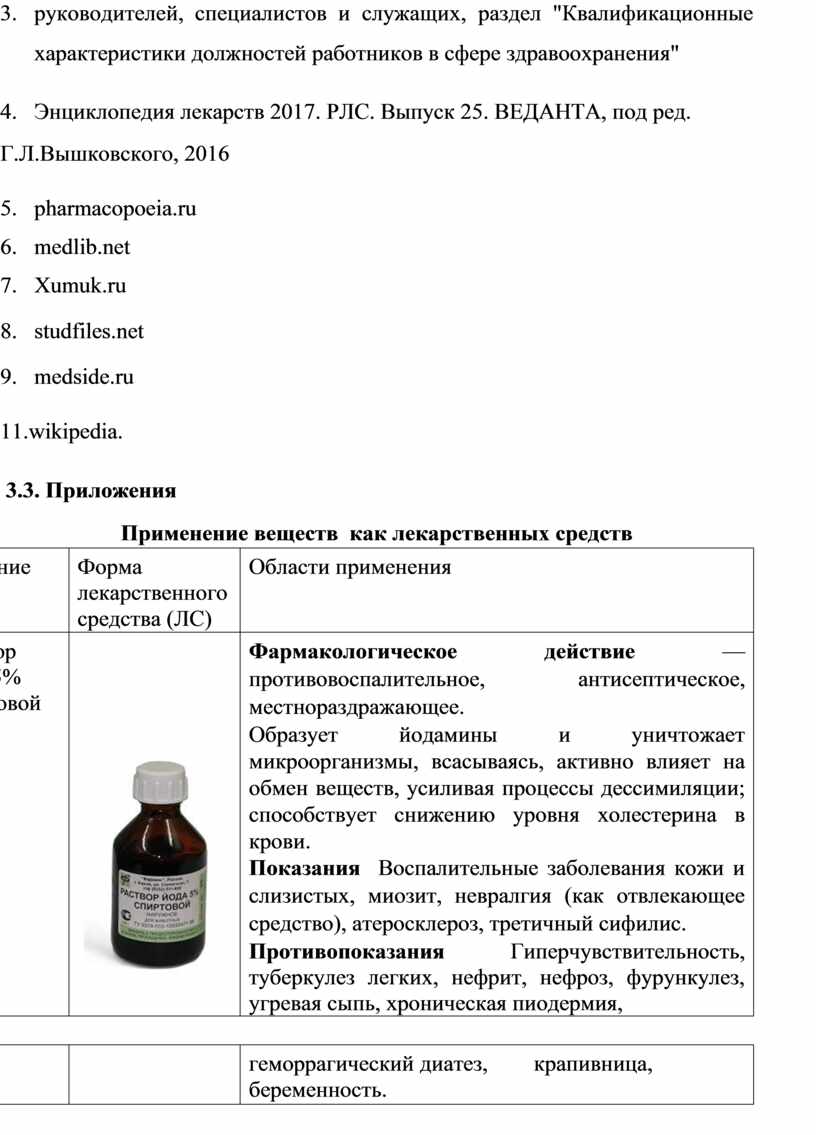 См. приложение № 1 «Применение веществ как лекарственных средств»
