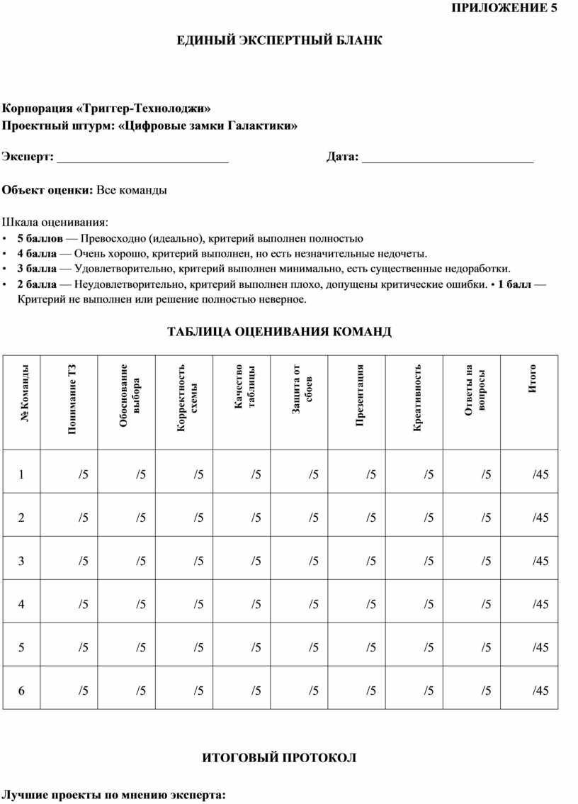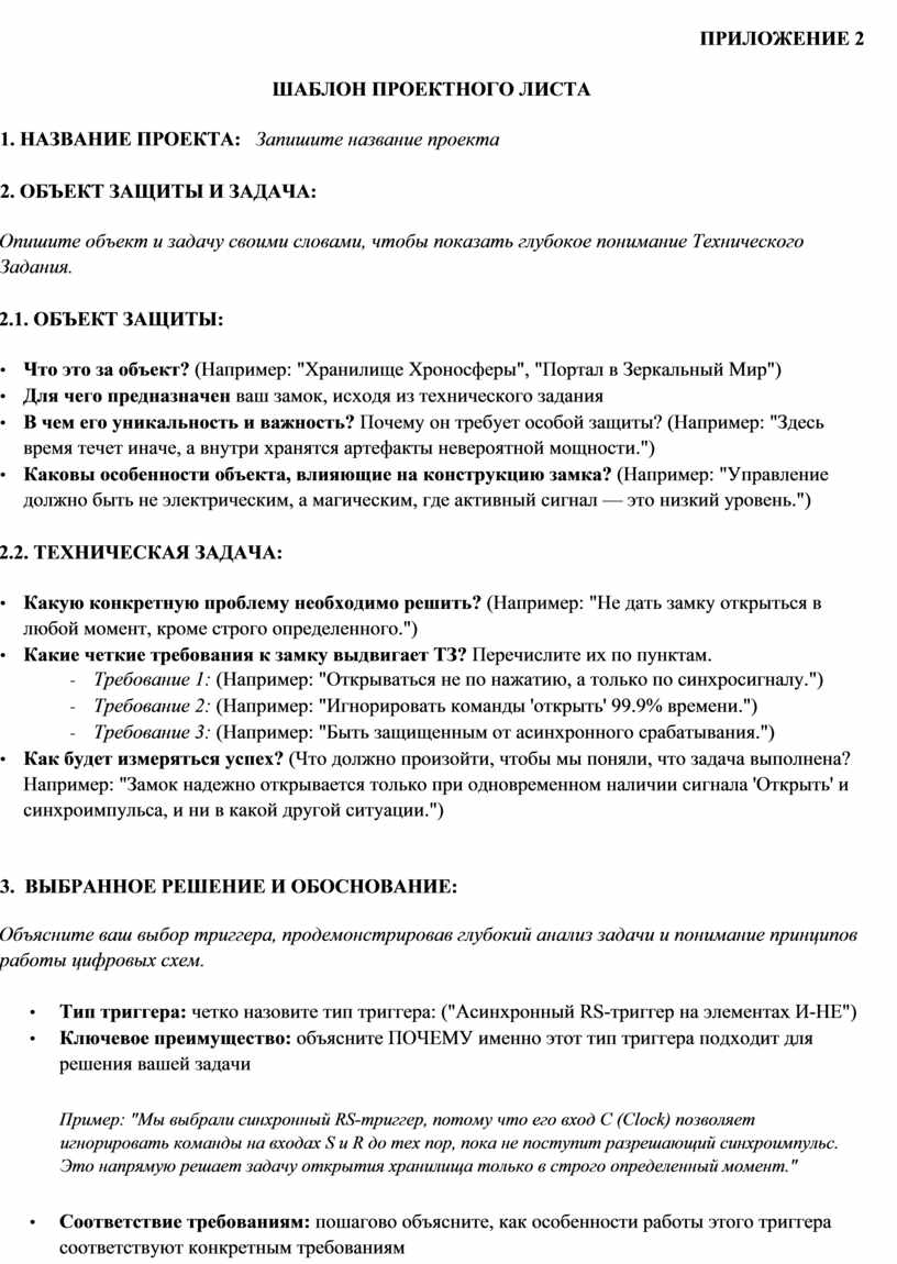 • Шаблон проектного листа (Приложение 2)
