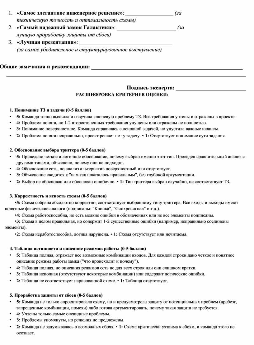 1. «Самое элегантное инженерное решение»: _________________ (за техническую точность и оптимальность схемы)