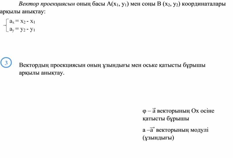 Координаталық осьтерге түсірілетін векторлардың проекциялары