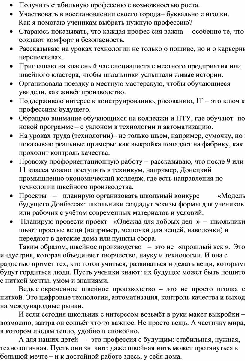 · Рассказываю на уроках технологии не только о пошиве, но и о карьерных перспективах.