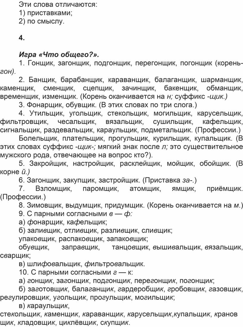 4. Утильщик, угольщик, стекольщик, могильщик, карусельщик, фильтровщик, чесальщик, вязальщик, сушильщик, кафельщик, сигнальщик, раздевальщик, караульщик, подметальщик. (Профессии.)