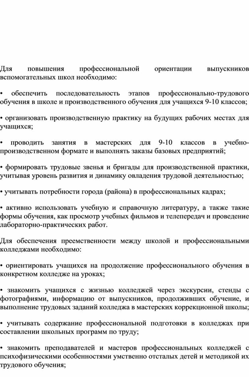 Для повышения профессиональной ориентации выпускников вспомогательных школ необходимо: