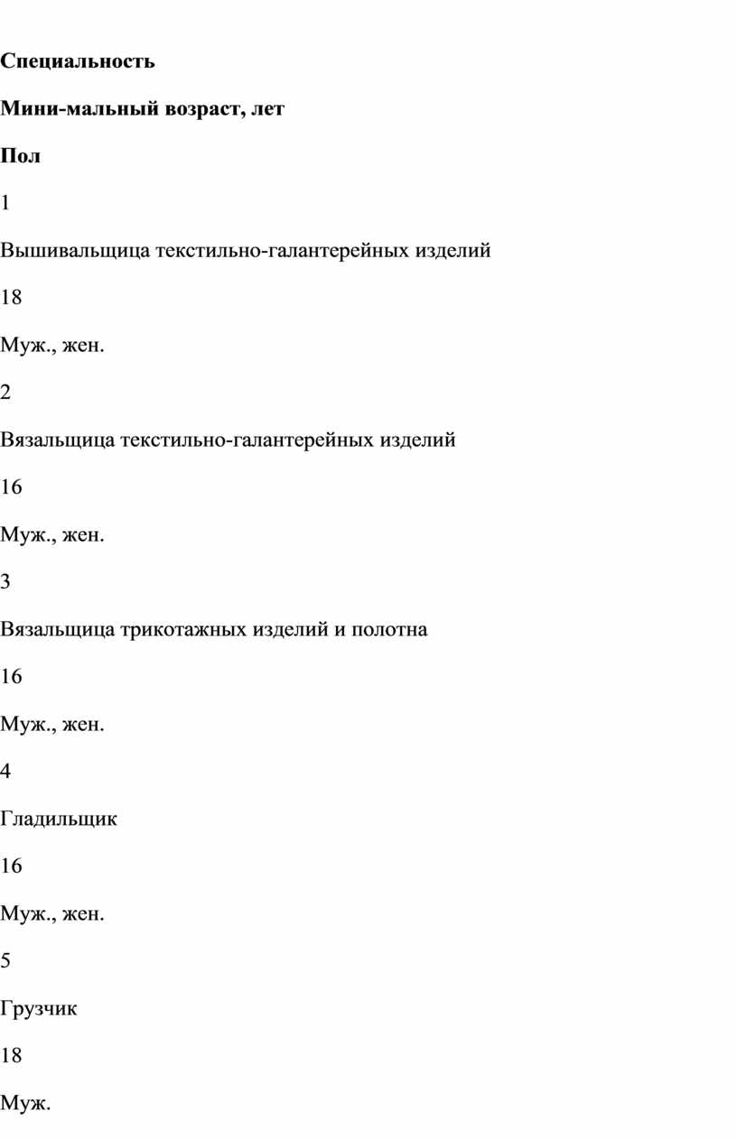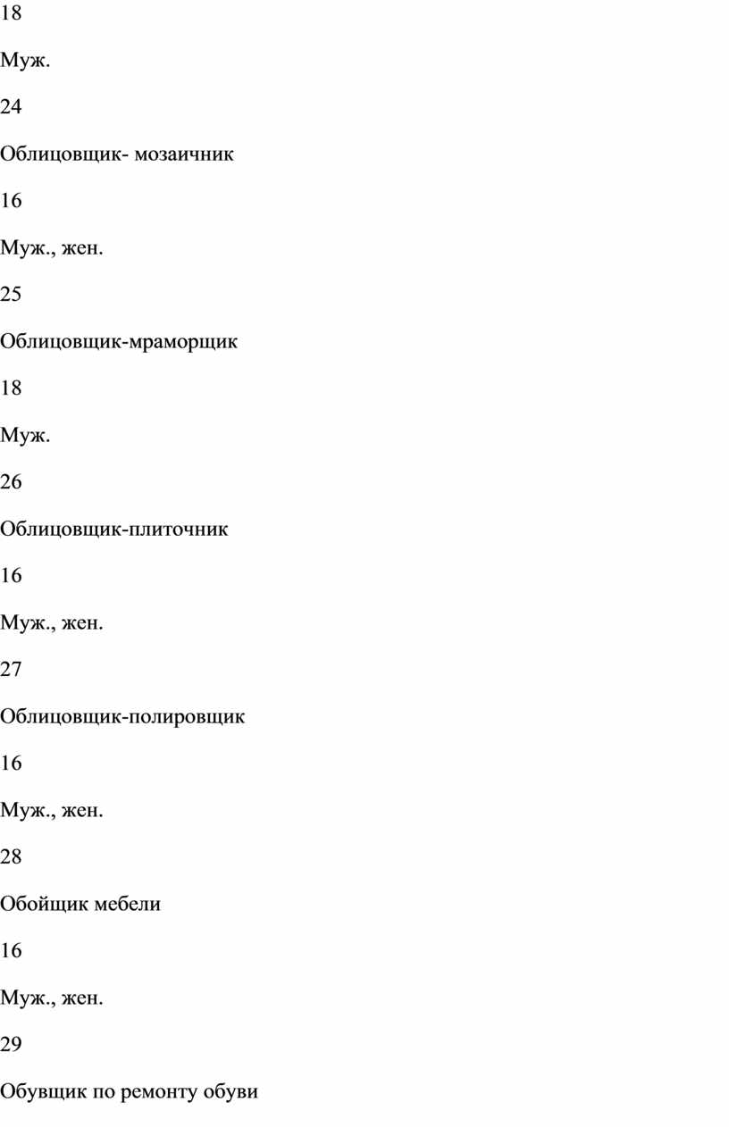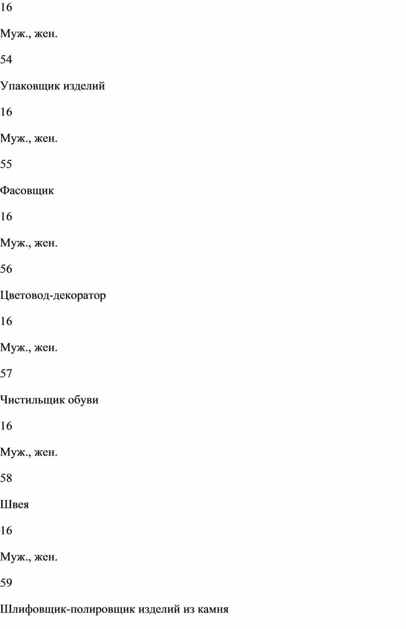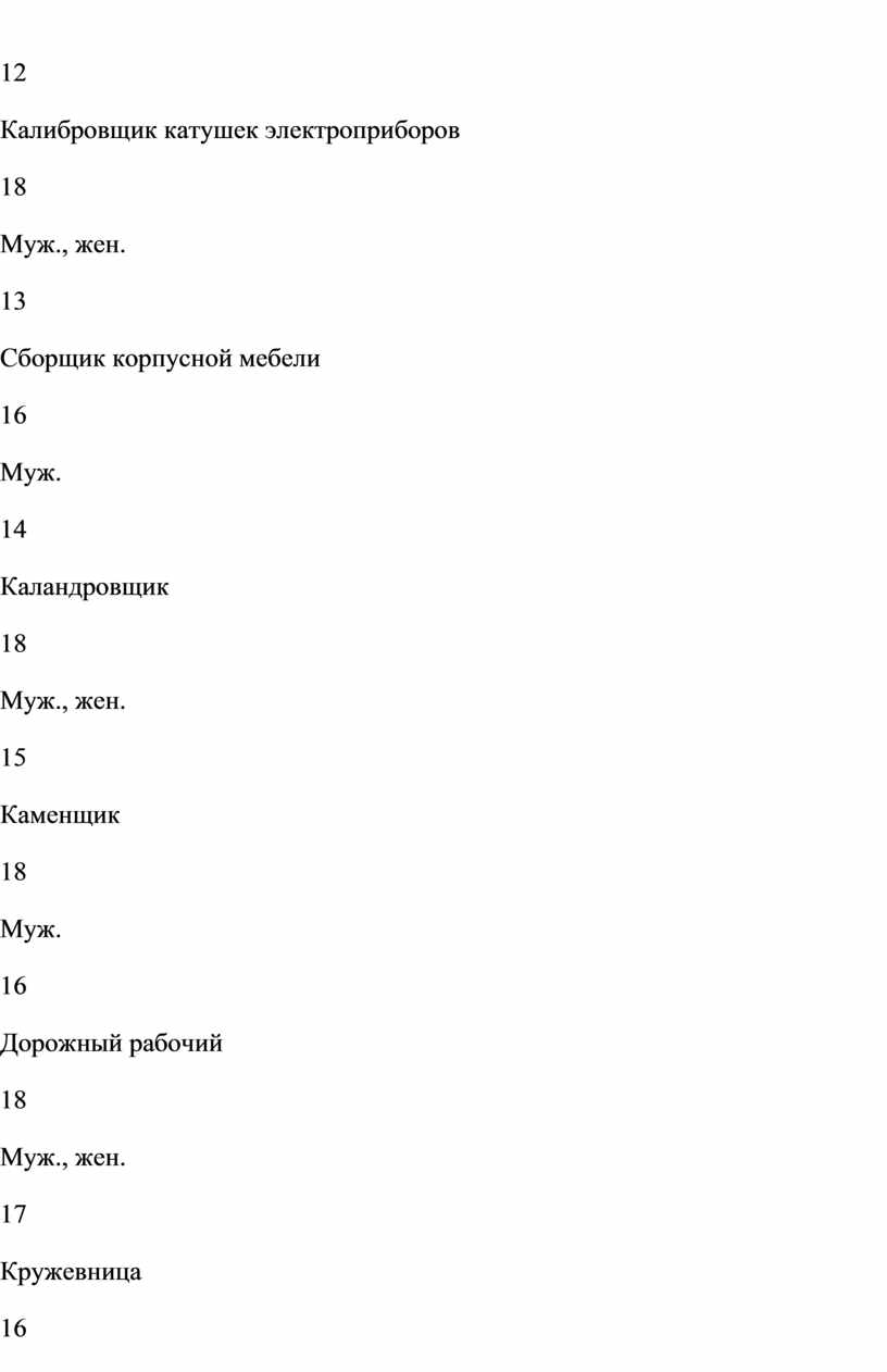 2. «Перечень профессий, предназначенных для обучения детей и подростков с умственными и физическими недостатками».