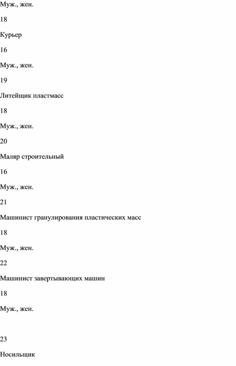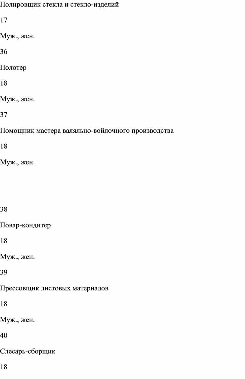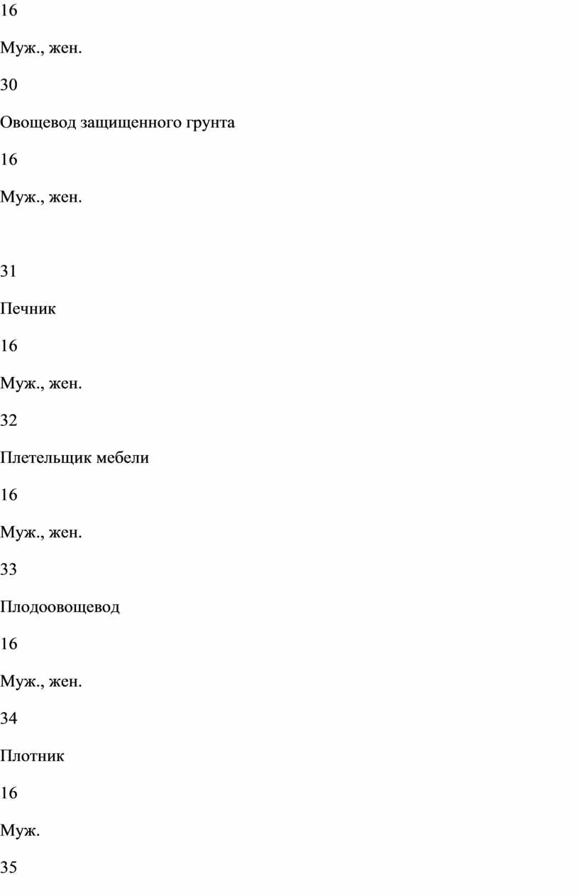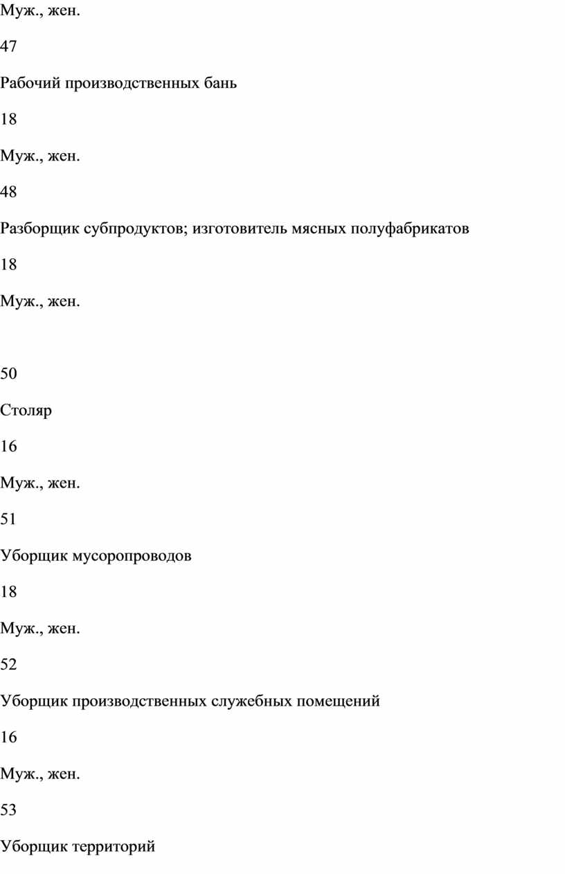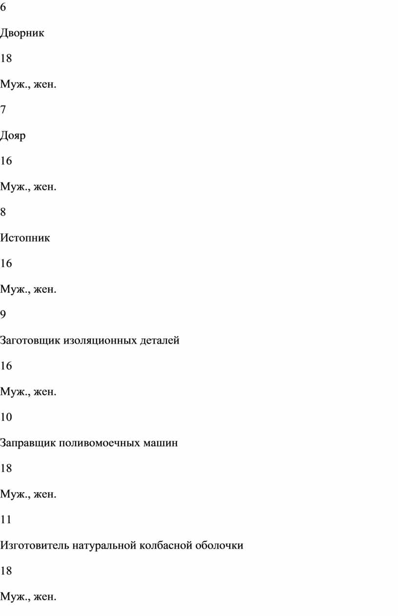 2. «Перечень профессий, предназначенных для обучения детей и подростков с умственными и физическими недостатками».
