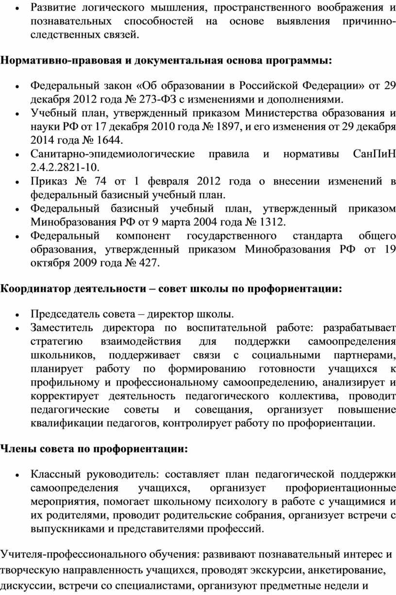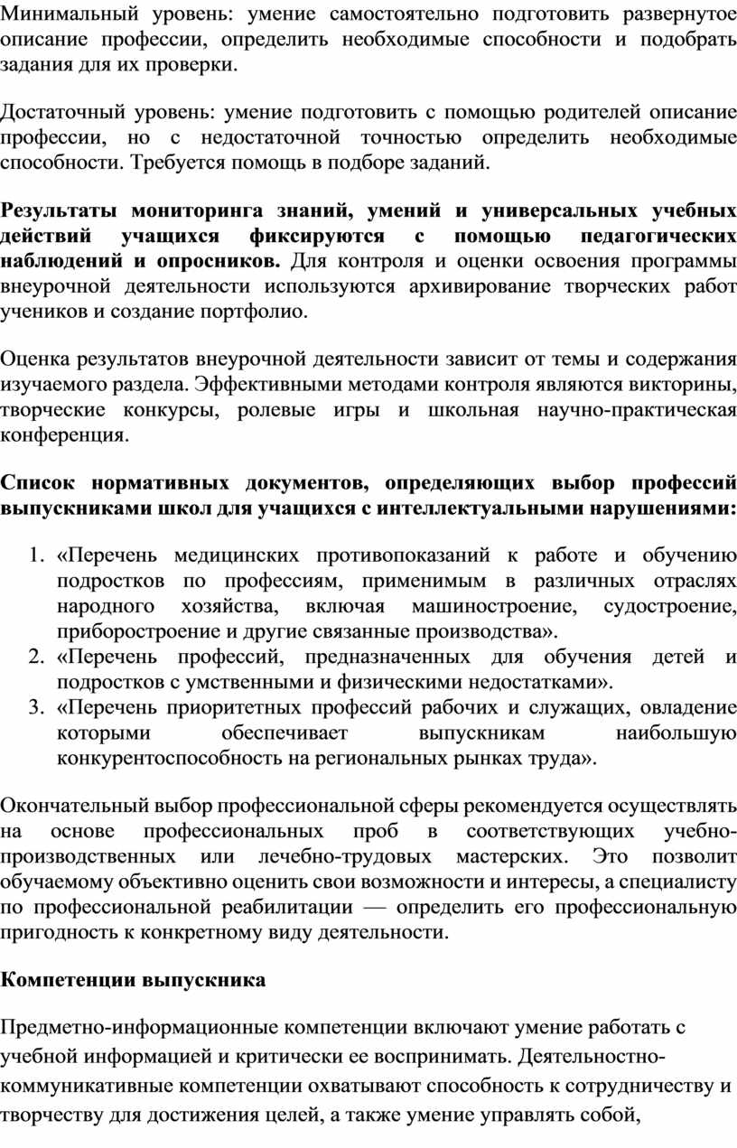 Список нормативных документов, определяющих выбор профессий выпускниками школ для учащихся с интеллектуальными нарушениями: