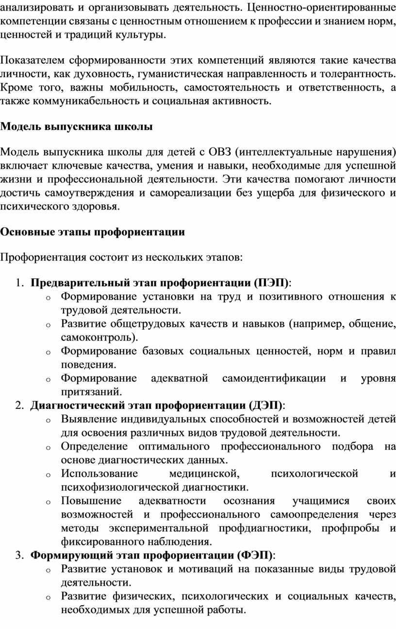 Модель выпускника школы для детей с ОВЗ (интеллектуальные нарушения) включает ключевые качества, умения и навыки, необходимые для успешной жизни и профессиональной деятельности. Эти качества помогают личности достичь самоутверждения и самореализации без ущерба для физического и психического здоровья.
