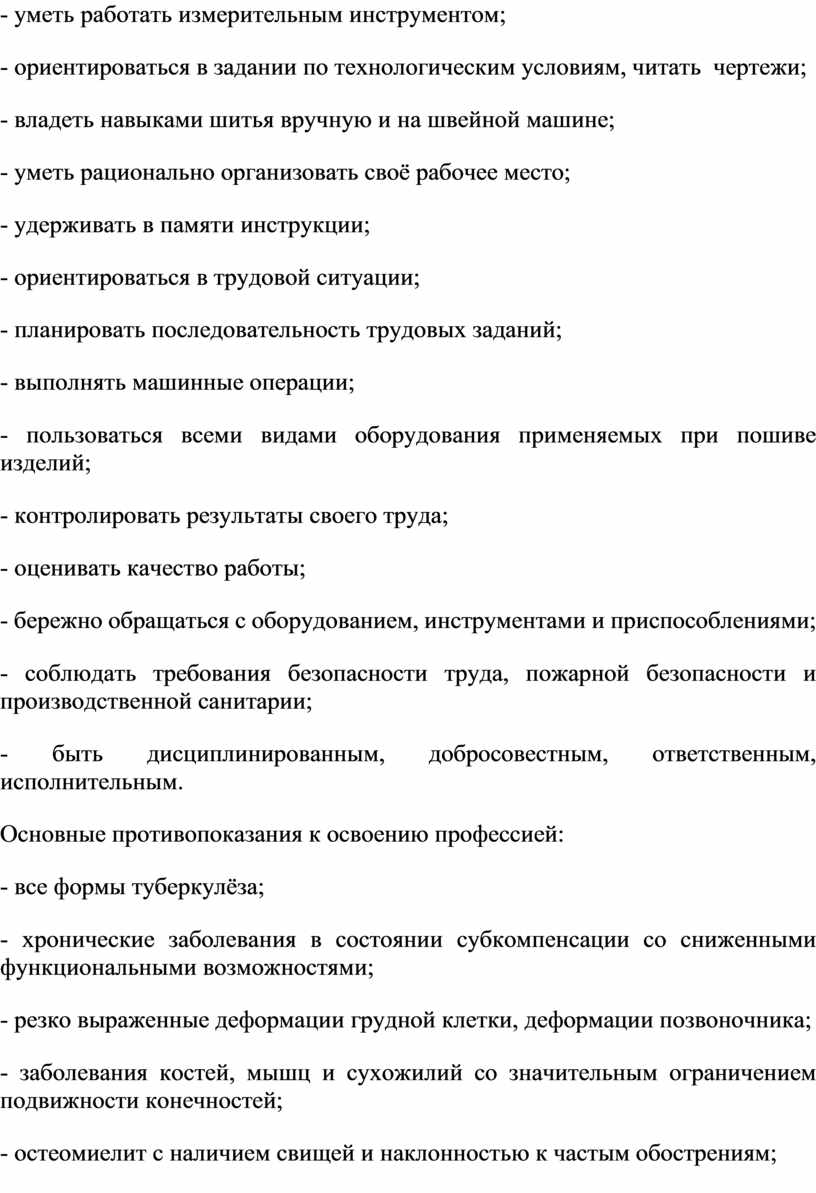 - пользоваться всеми видами оборудования применяемых при пошиве изделий;