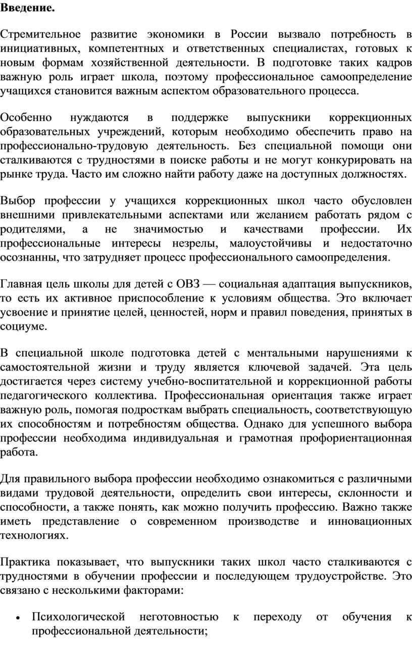 Выбор профессии у учащихся коррекционных школ часто обусловлен внешними привлекательными аспектами или желанием работать рядом с родителями, а не значимостью и качествами профессии. Их профессиональные интересы незрелы, малоустойчивы и недостаточно осознанны, что затрудняет процесс профессионального самоопределения.
