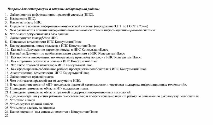 5 - Самостоятельно, используя встроенное руководство пользователя, изучите работу со списками: что такое список, какие операции над списками можно выполнить в ИПС КонсультантПлюс, как их можно выполнить, отметьте в отчете