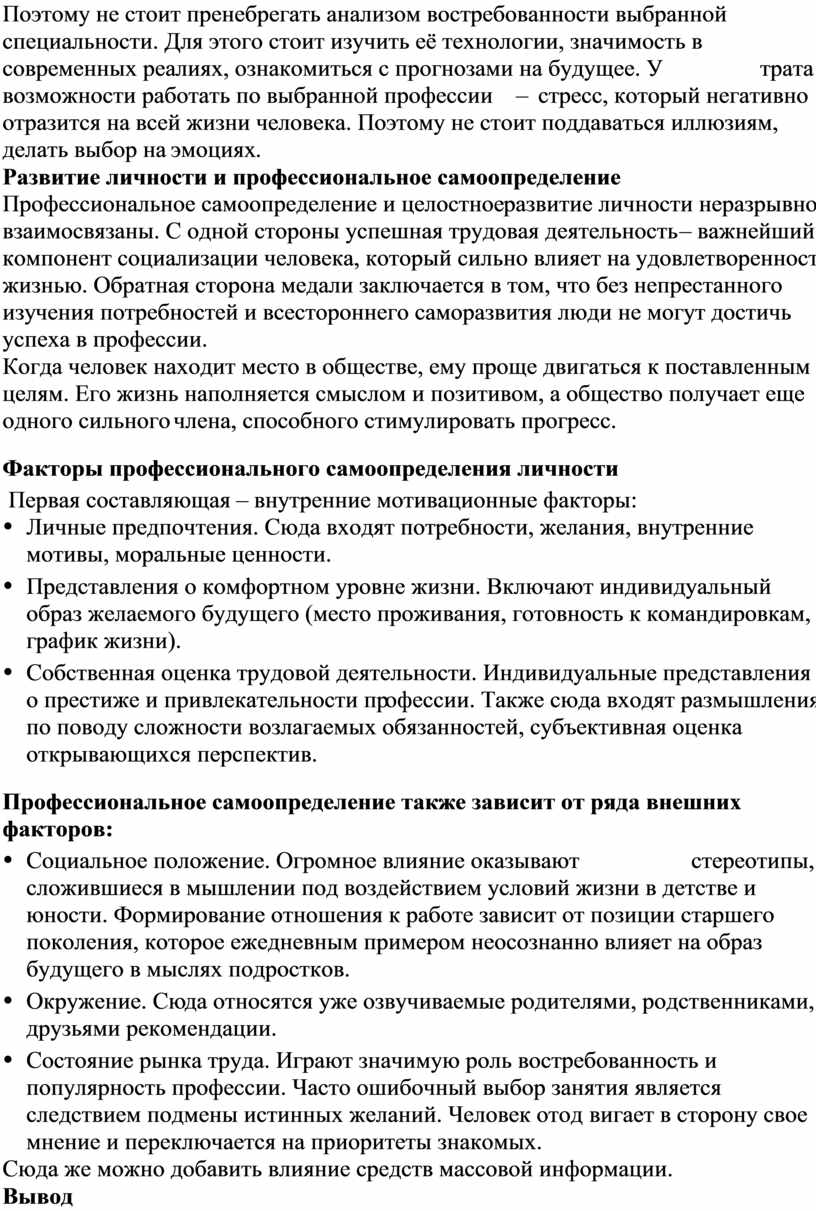 Профессиональное самоопределение личности