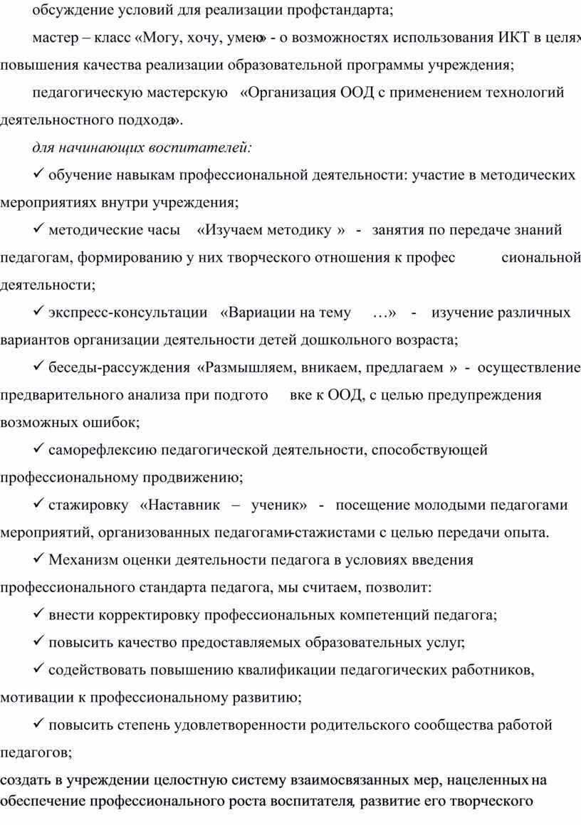 ü создать в учреждении целостную систему взаимосвязанных мер, нацеленных на обеспечение профессионального роста воспитателя, развитие его творческого потенциала;