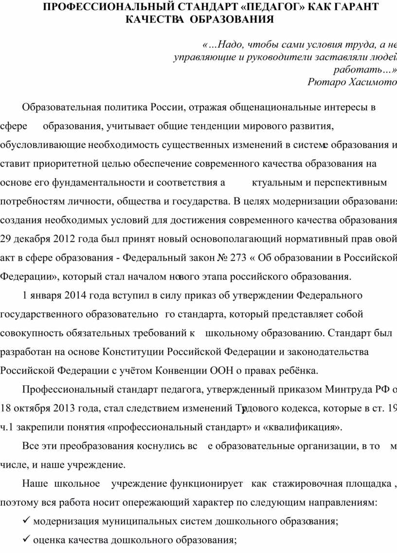 ПРОФЕССИОНАЛЬНЫЙ СТАНДАРТ «ПЕДАГОГ» КАК ГАРАНТ КАЧЕСТВА ОБРАЗОВАНИЯ
