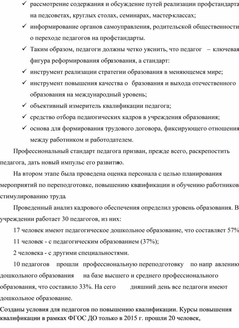 ü информирование органов самоуправления, родительской общественности о переходе педагогов на профстандарты.