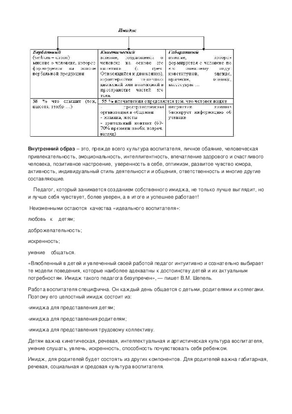 потребностям. Имидж такого педагога безупречен», — пишет В.М. Шепель.