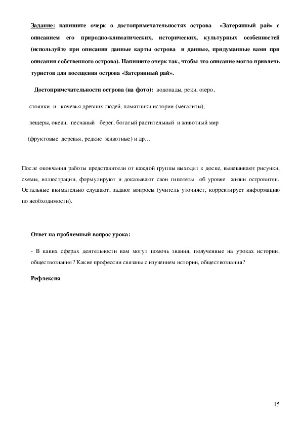 14Задание: напишите очерк о достопримечательностях острова «Затерянный рай» с