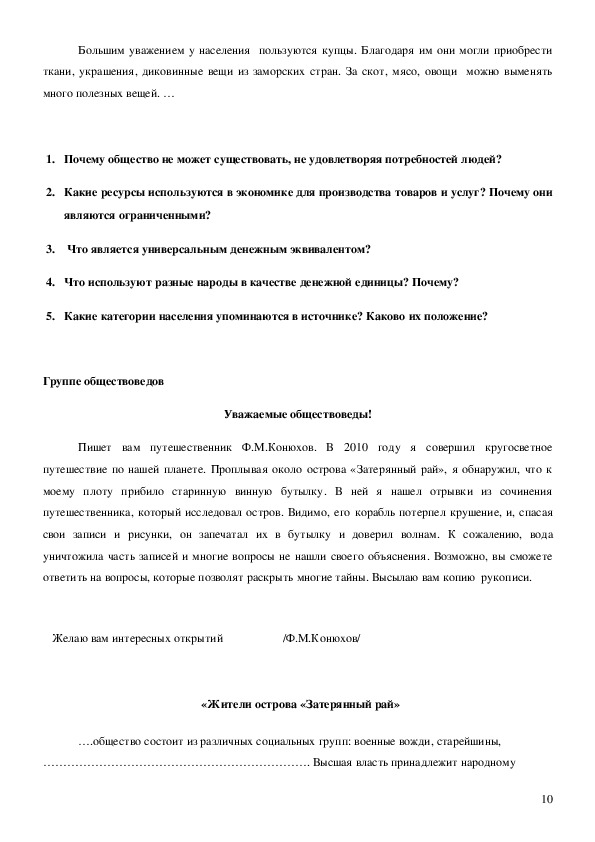 1) Какой общественный строй существовал на острове «Затерянный рай»?