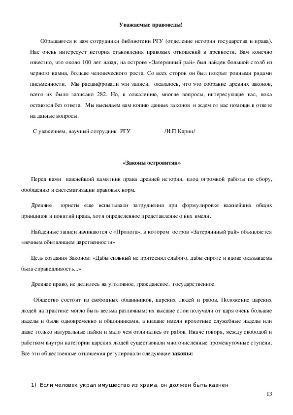 С уважением, научный сотрудник РГУ /И.П.Карин/