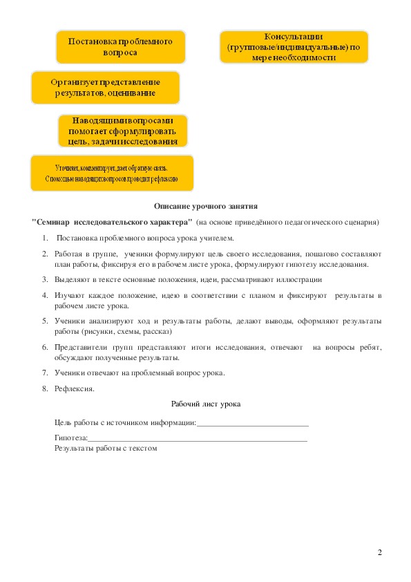 "Семинар исследовательского характера" (на основе приведённого педагогического сценария)