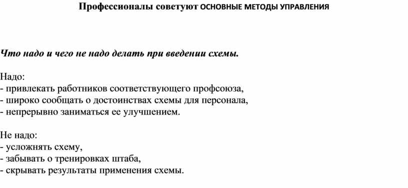 Профессионалы советуют ОСНОВНЫЕ МЕТОДЫ УПРАВЛЕНИЯ