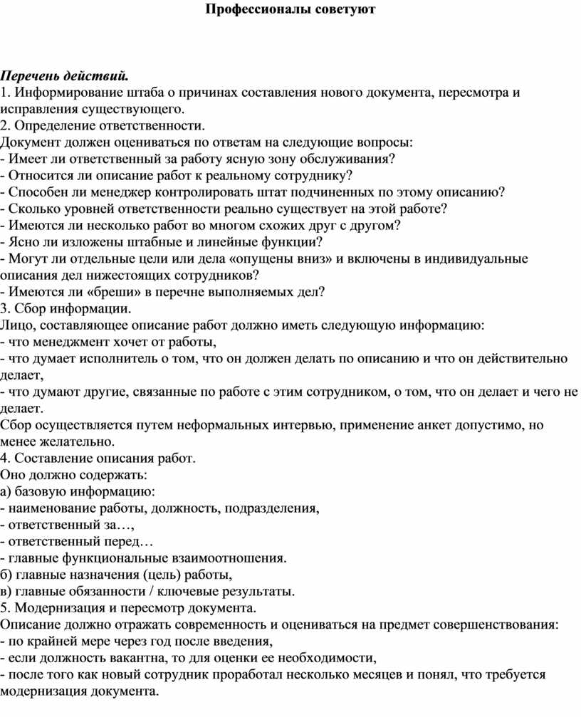 Лицо, составляющее описание работ должно иметь следующую информацию: