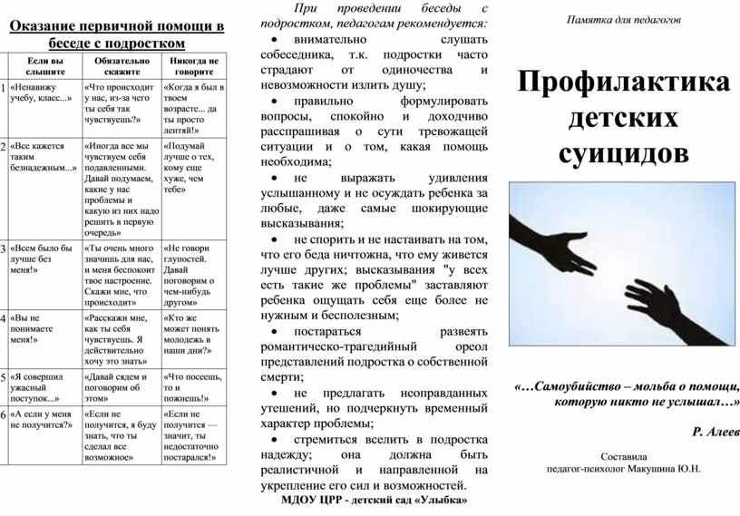 · Наличие примера суицида в ближайшем окружении, а также среди значимых взрослых или сверстников.