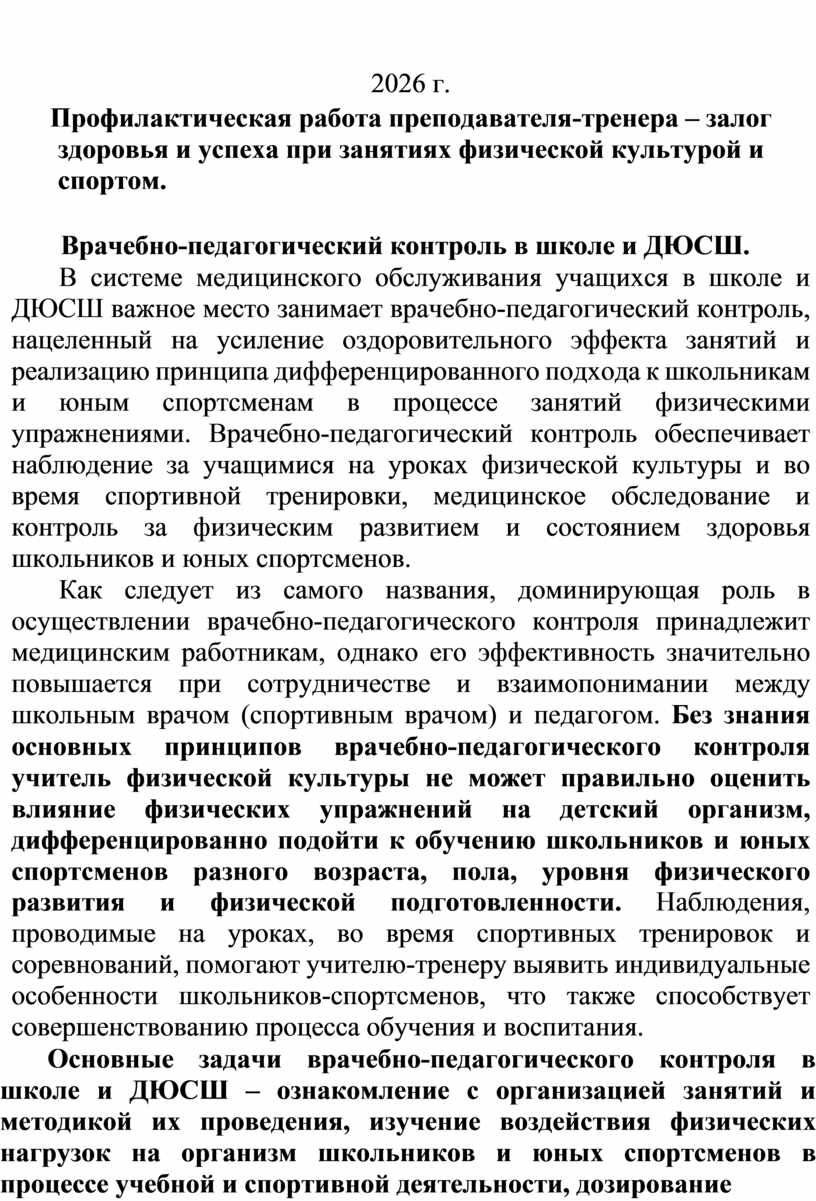 Врачебно-педагогический контроль в школе и ДЮСШ.
