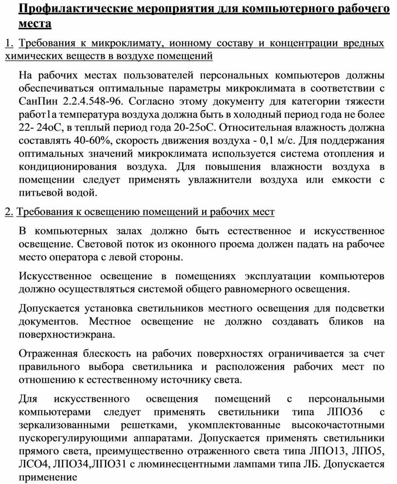 Профилактические мероприятия для компьютерного рабочего места