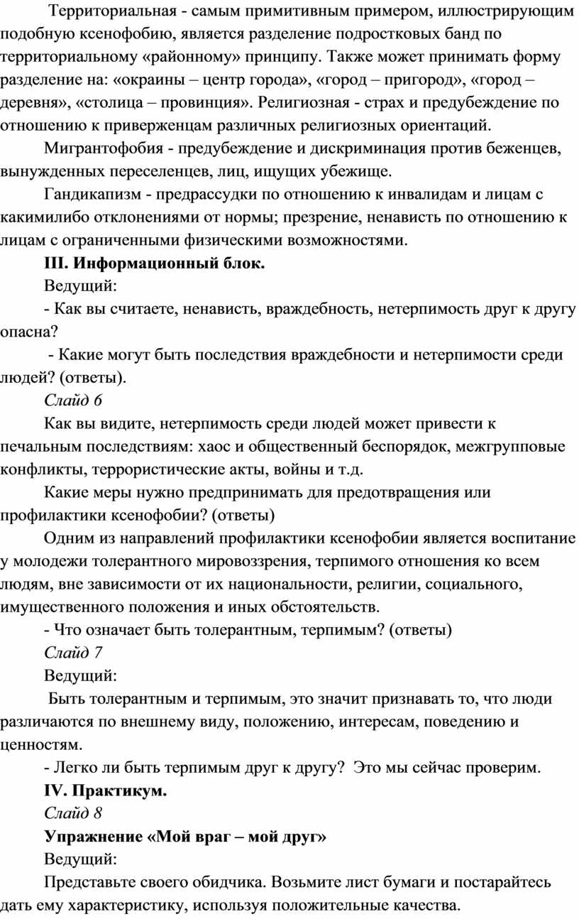 Проблема нетерпимости актуальна в современном обществе. Сегодня мы с вами постараемся разобраться в данном вопросе и с помощью практических упражнений попробуем развить навыки терпимого общения друг с другом.