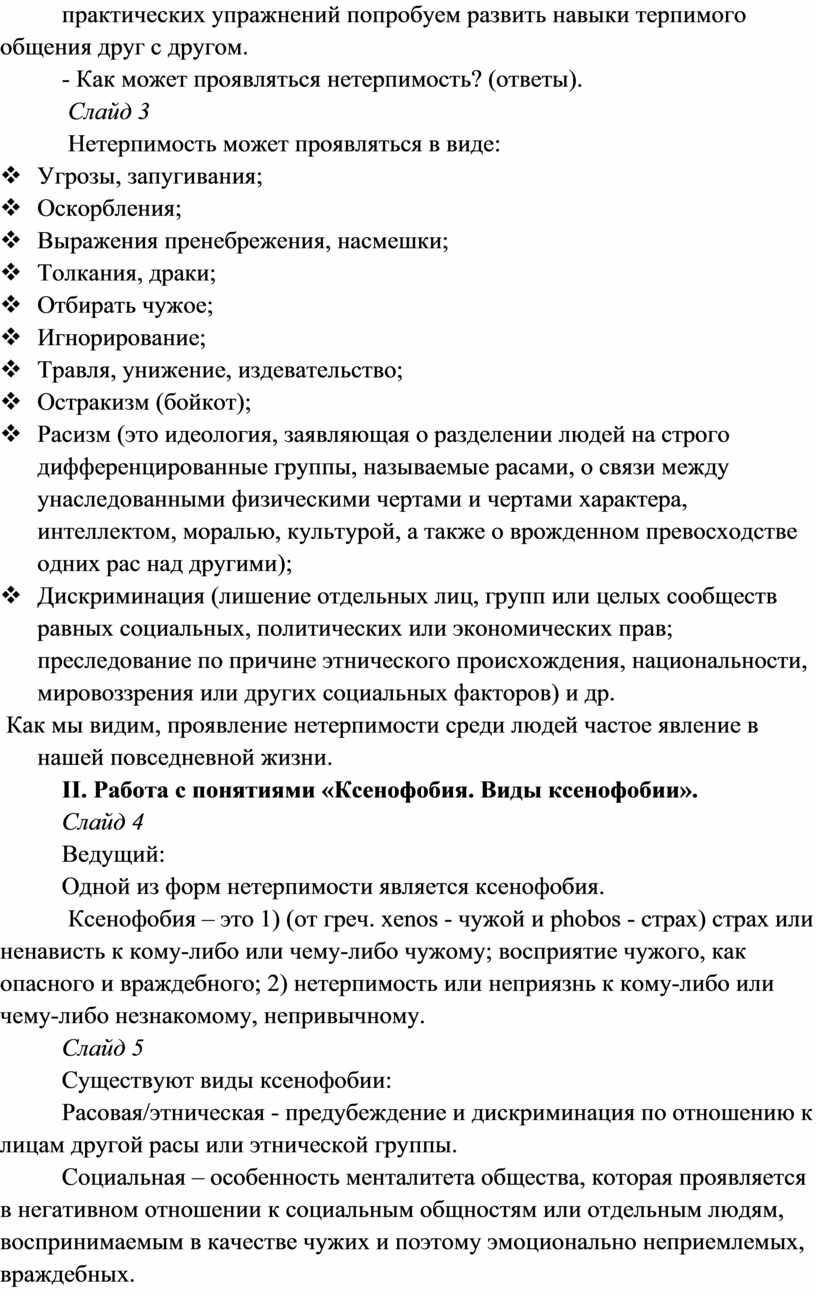 II. Работа с понятиями «Ксенофобия. Виды ксенофобии».