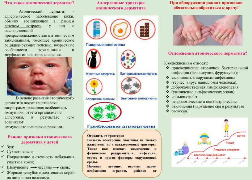 Ранние признаки атопического дерматита у детей ü Зуд; ü Сухость кожи; ü Покраснение и отечность небольших участков кожи; ü ü Жирные чешуйки и желтоватые корки на лице и под волосами. ü Нарушение сна. |