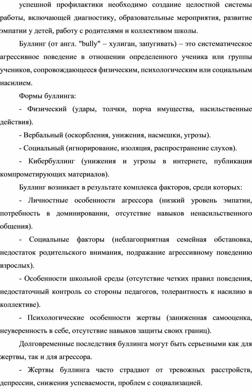Таким образом, профилактика буллинга – важнейшая задача школы, требующая системного подхода.