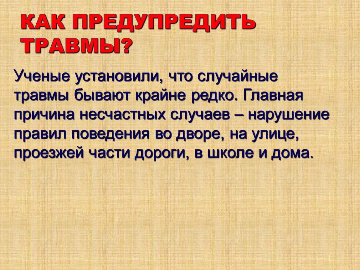 КАК ПРЕДУПРЕДИТЬ ТРАВМЫ?