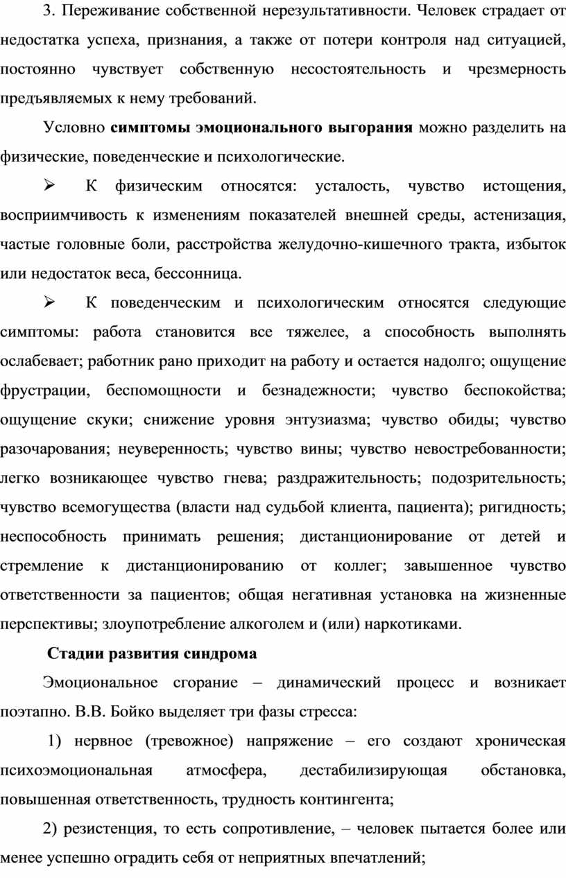 Эмоциональное сгорание – динамический процесс и возникает поэтапно. В.В. Бойко выделяет три фазы стресса: