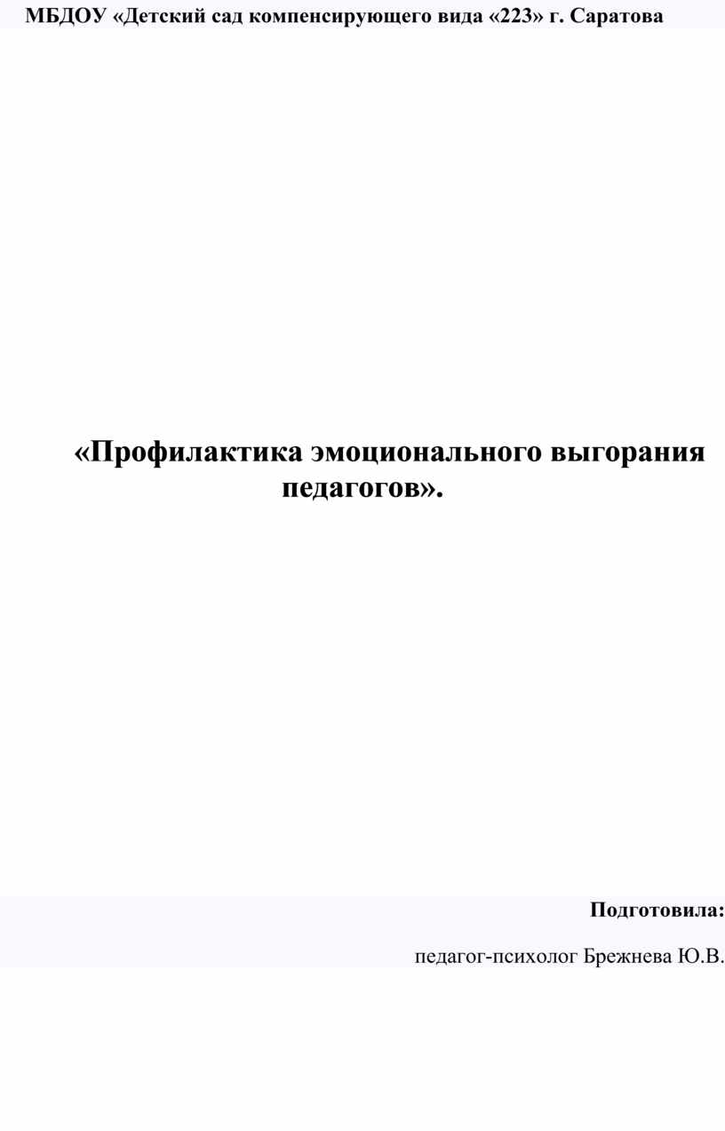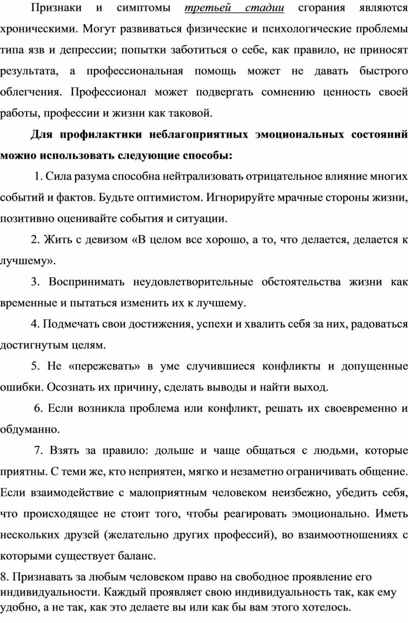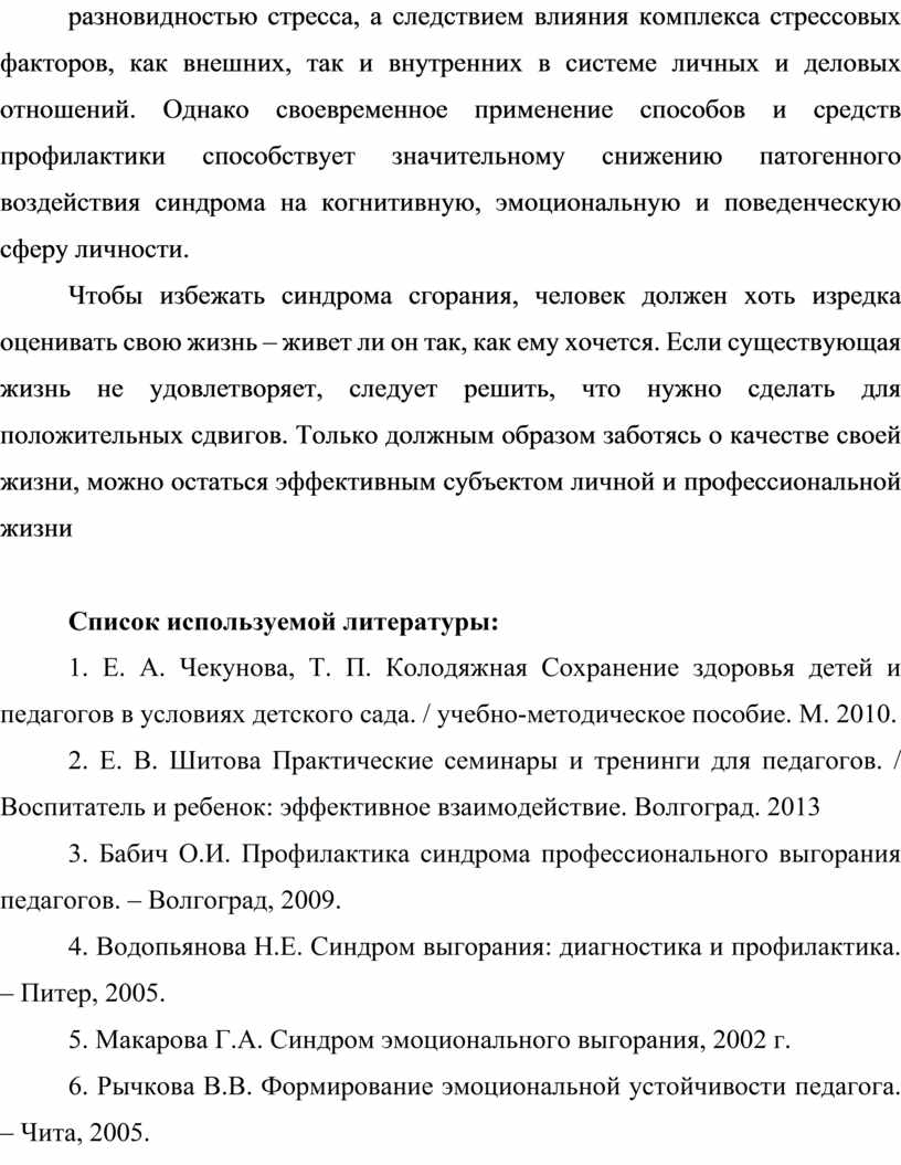 3. Бабич О.И. Профилактика синдрома профессионального выгорания педагогов. – Волгоград, 2009.