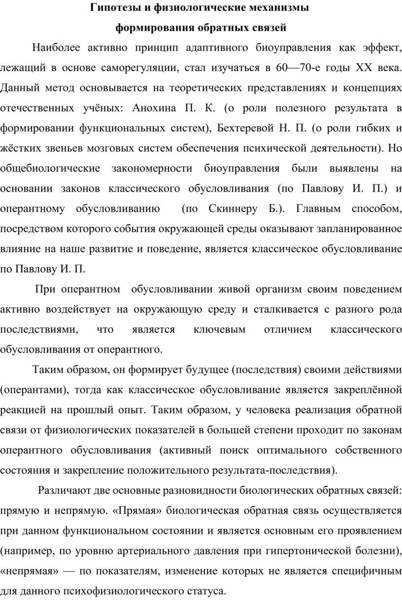 2.2. Гипотезы и физиологические механизмы формирования обратных