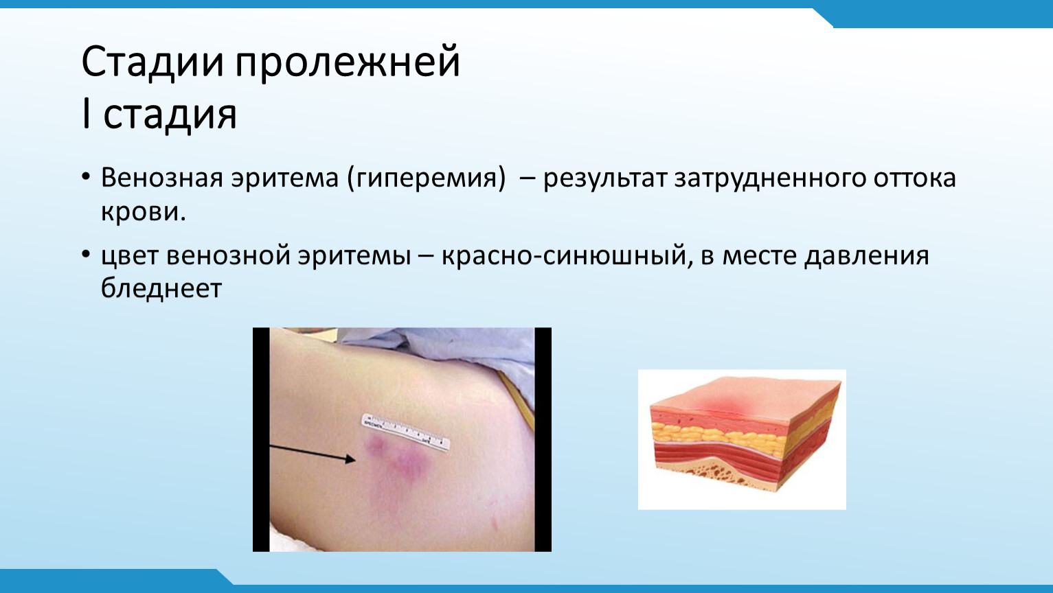 Стадии пролежнейI стадия
