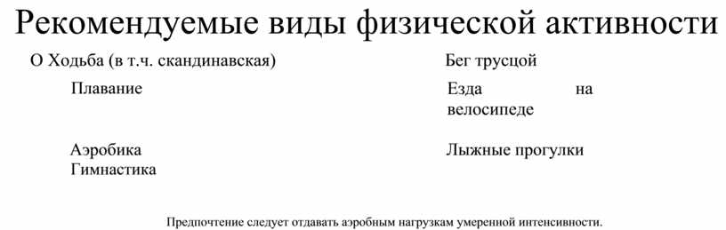 Рекомендуемые виды физической активности